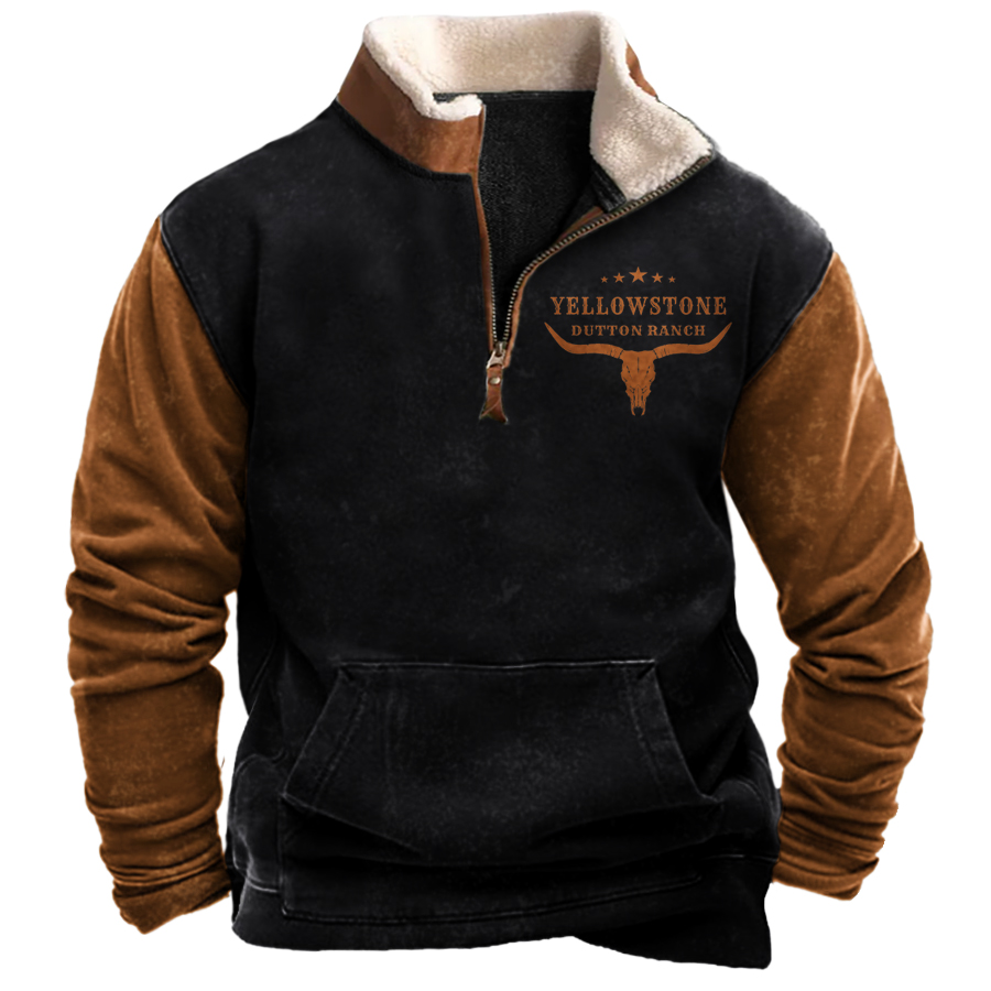 Herren-Sweatshirt „Vintage Western Yellowstone“ mit Farbblock und Reißverschluss und Stehkragen