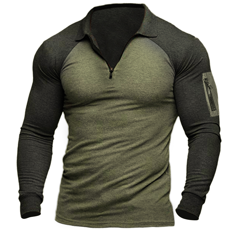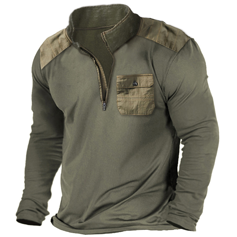 Taktisches Langarm-T-Shirt für Herren im Freien mit Reißverschlusstasche und halbem Reißverschlusskragen