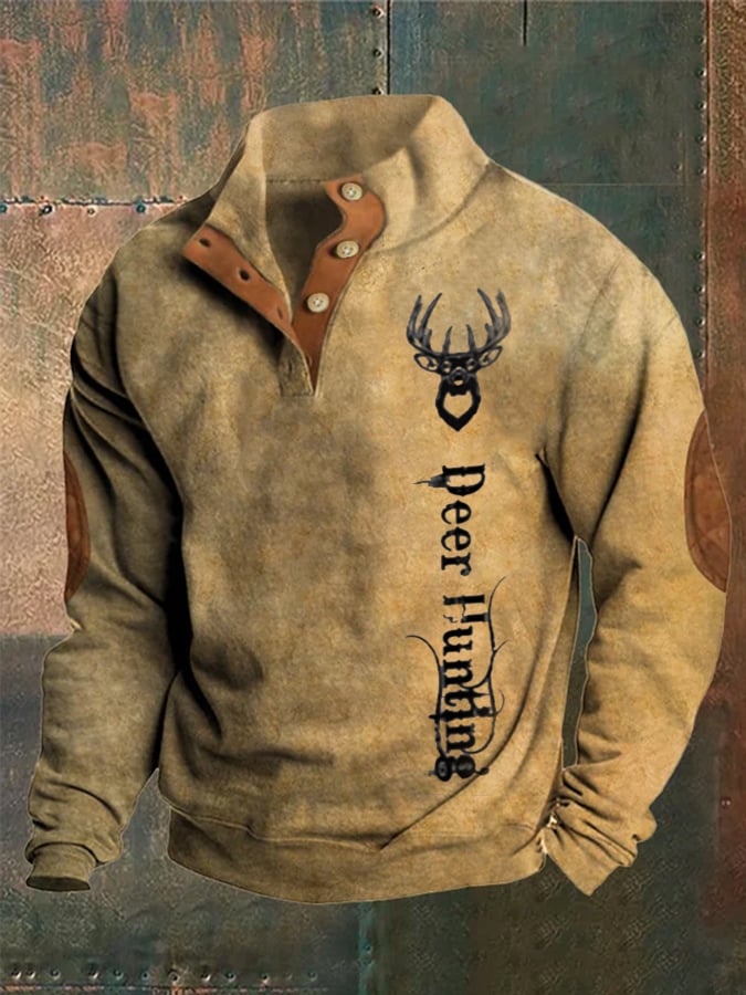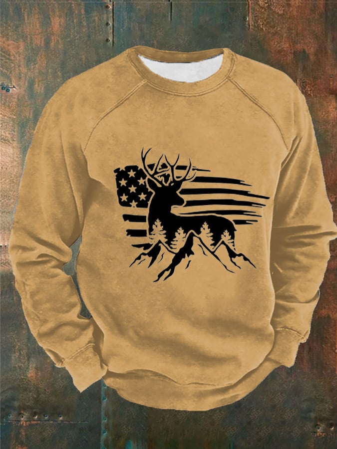 Lässiges Sweatshirt mit Vintage-Hirsch-Print für Herren