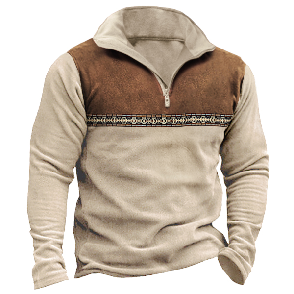 Herren-Sweatshirt im Retro-Western-Stil mit Maisknopf und Stehkragen