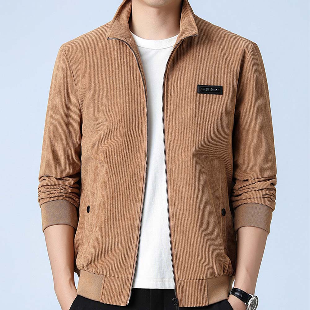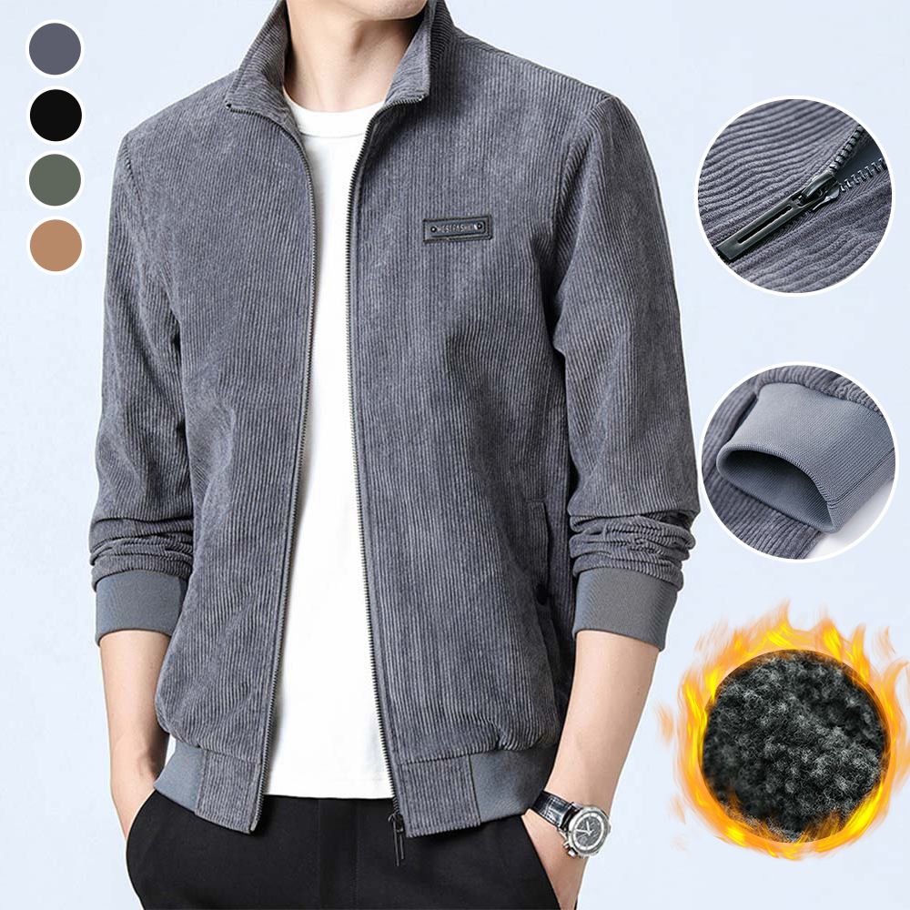Ricemly Neue Herren-Cord-Stehkragenjacke für Frühling und Herbst