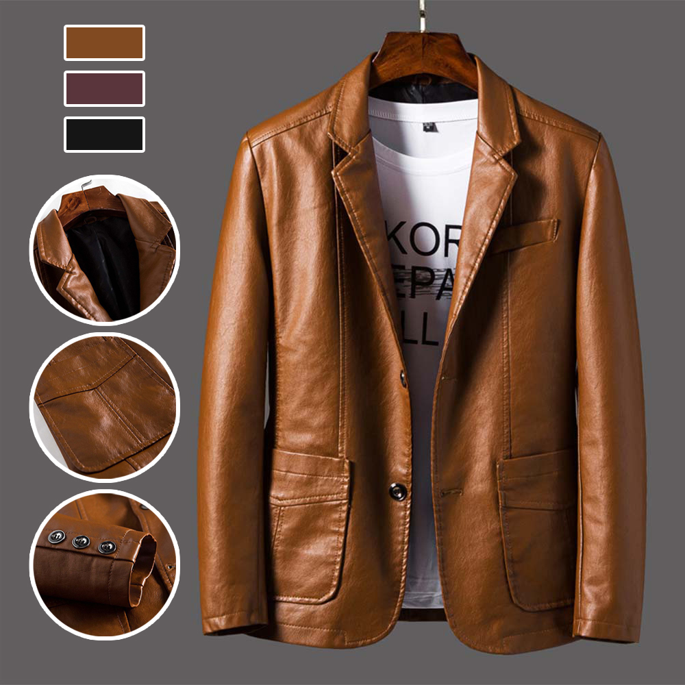 Ricemly Lässiger, hochwertiger Reversblazer aus PU-Leder für Herren