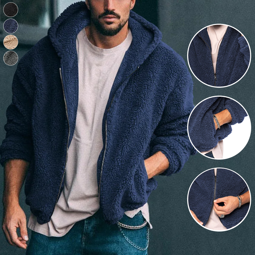 Ricemly Herbst und Winter neue warme Plüsch-Kapuzenjacke für Herren