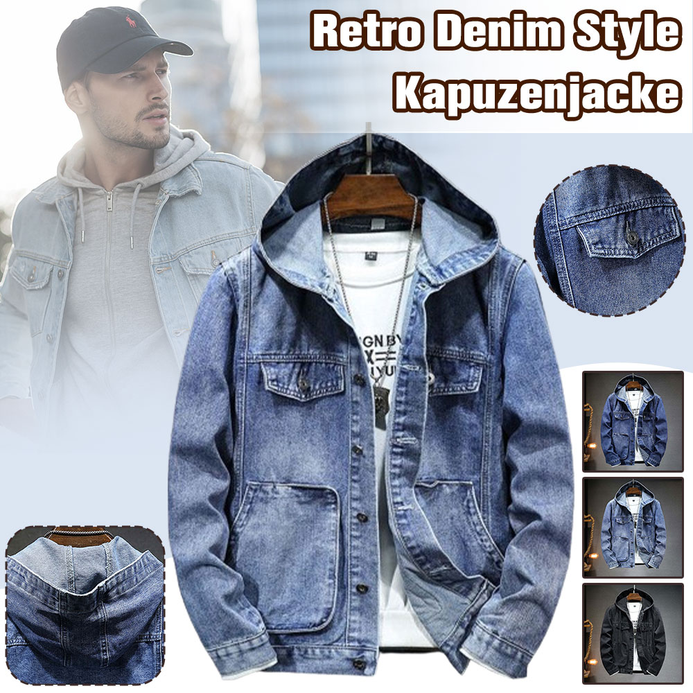Ricemly Vintage-Jeansjacke mit Kapuze für Herren