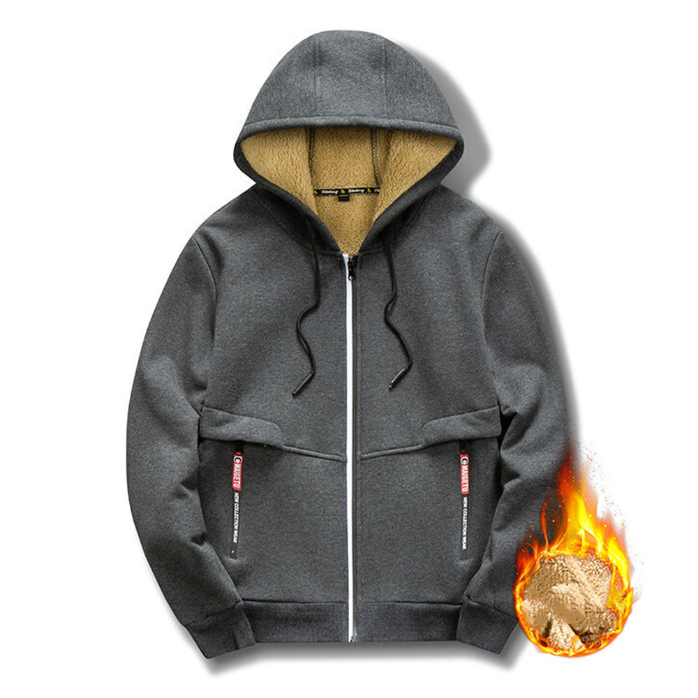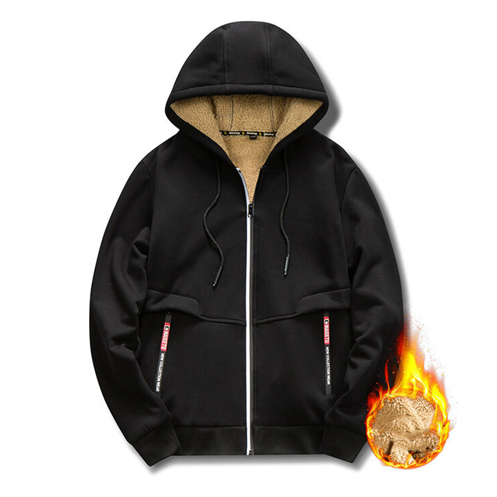 Ricemly Winterjacke mit Reißverschluss und Fleece-Kapuze für Herren