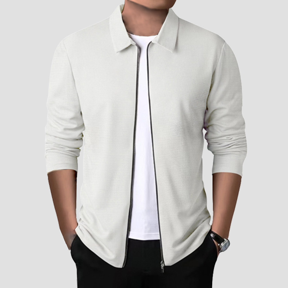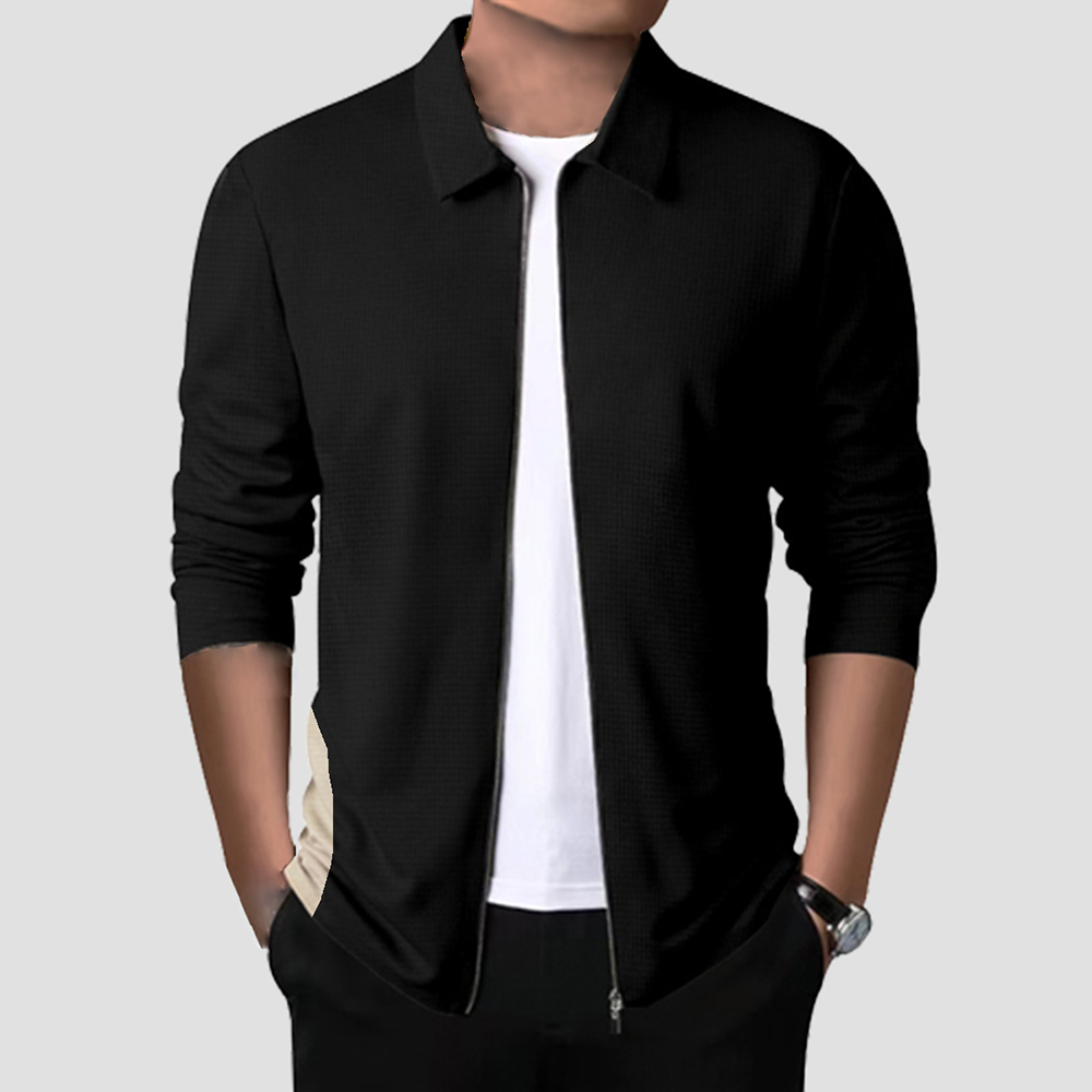 1 * 2023 Neue Herren-Cardigan-Jacke mit Waffel-Reißverschluss und Revers