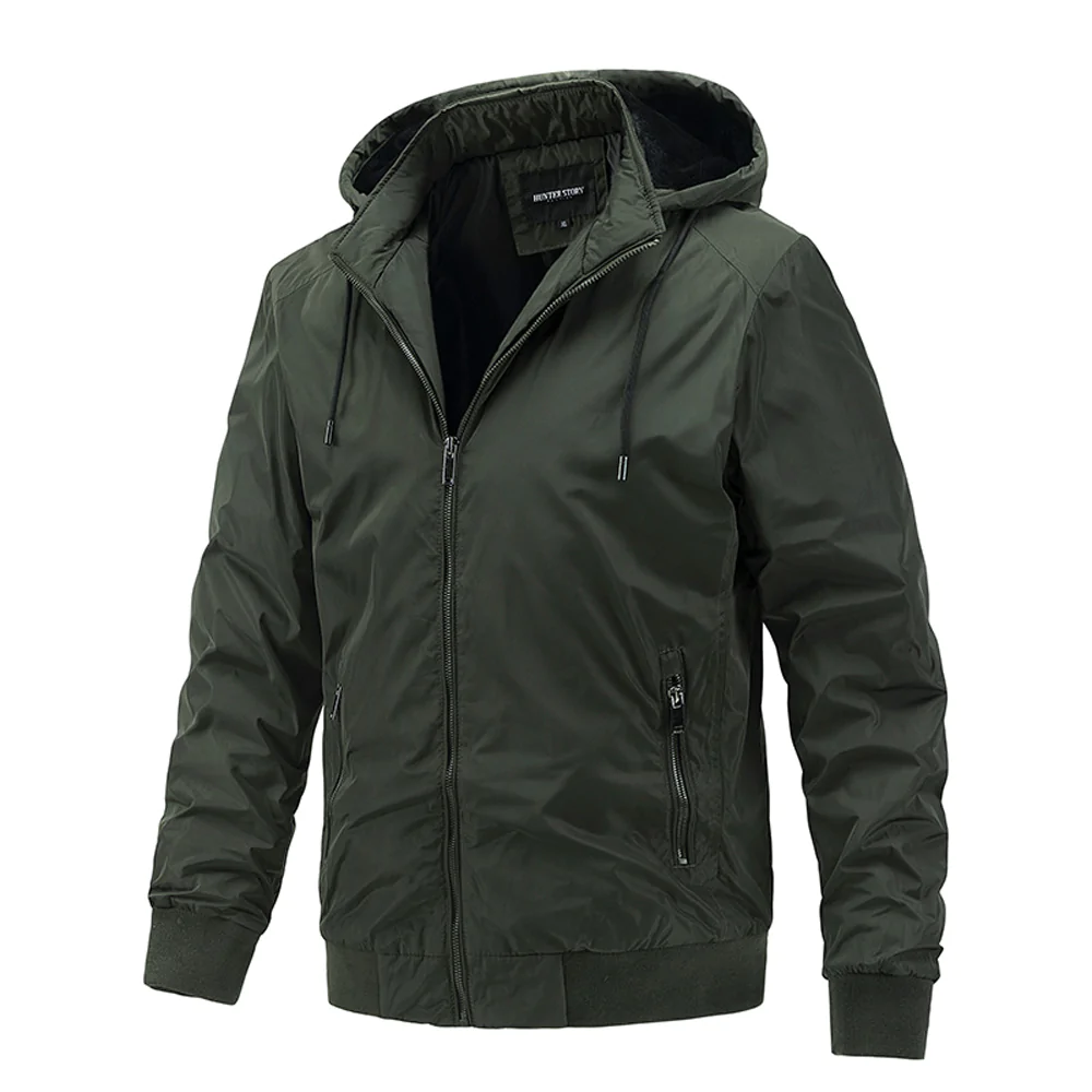 1* Dicke Herrenjacke für Herbst und Winter mit abnehmbarer Kapuze
