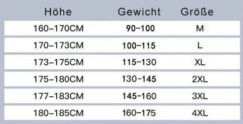 Um den Tragekomfort zu erhöhen, ist das Design enger anliegend. Daher fällt die Größe kleiner aus als sonst. Es wird empfohlen, eine Nummer größer als sonst zu kaufen (wenn Sie beispielsweise normalerweise L tragen, kaufen Sie XL).