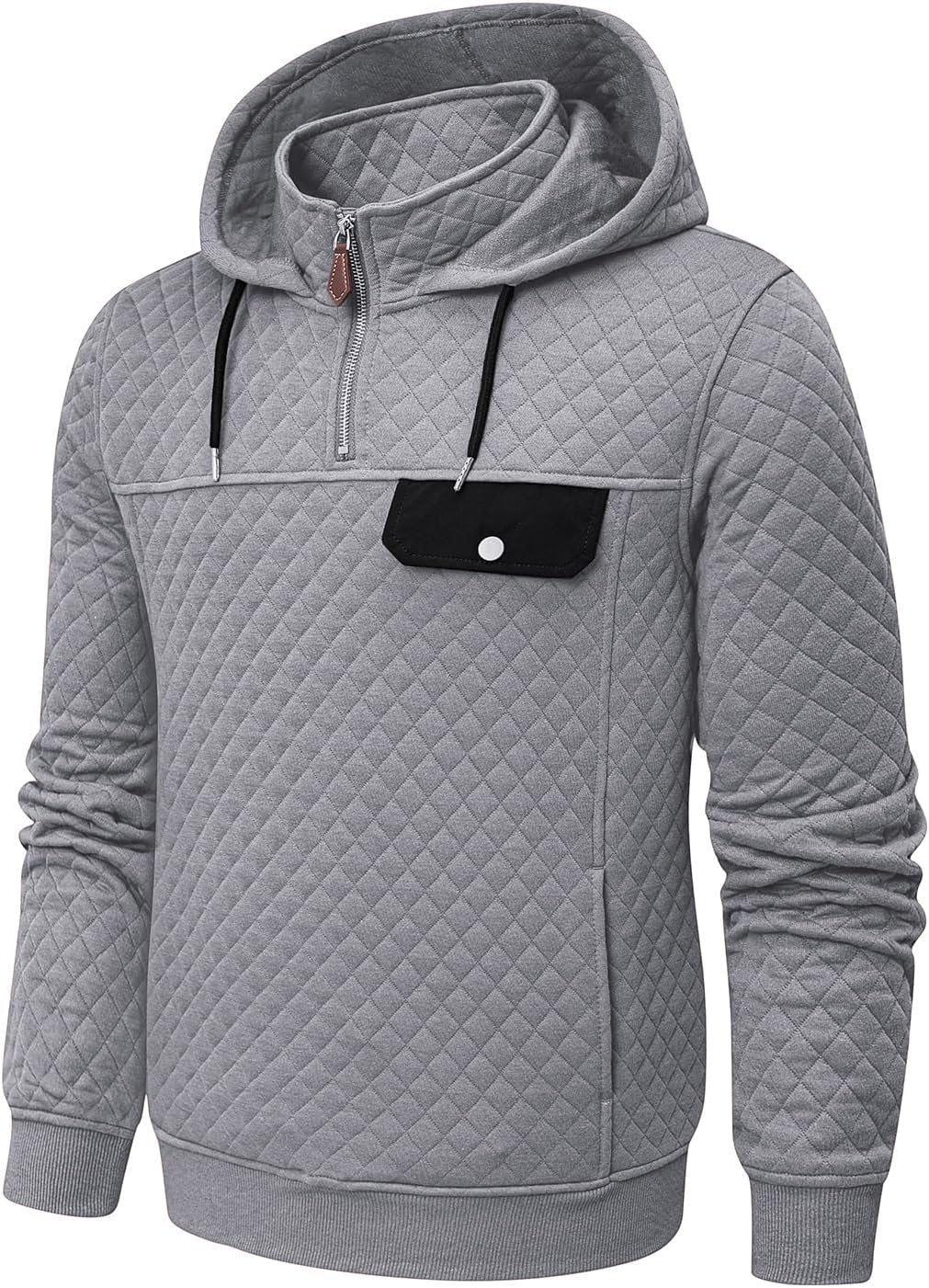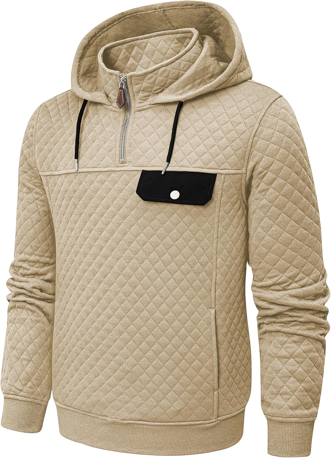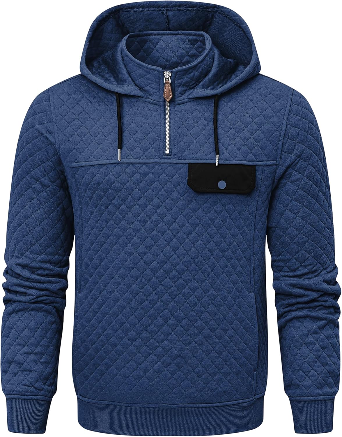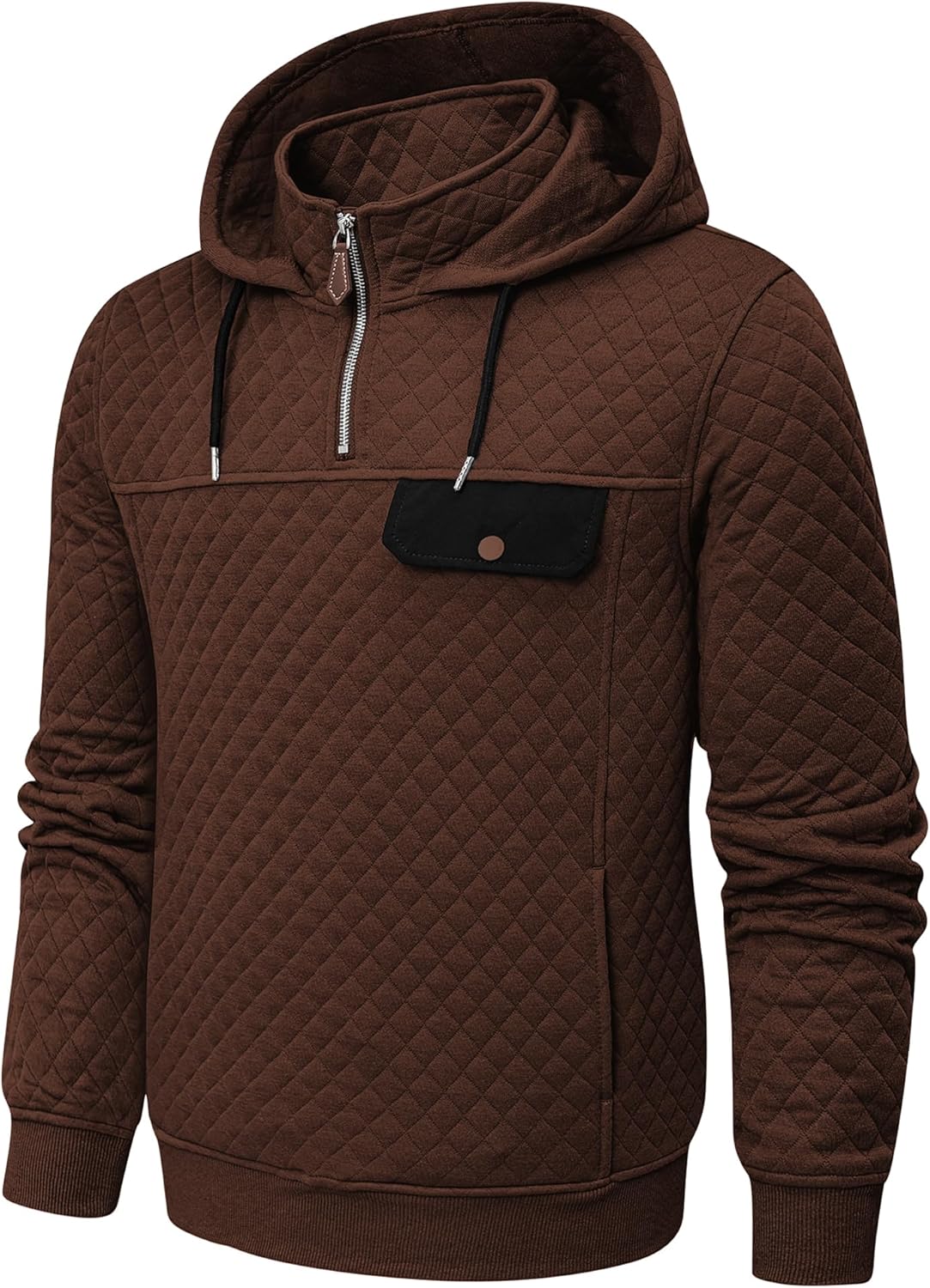 Men's Quilted Hoodies Casual Long Sleeve Quarter-Zip Pullover Sweatshirt with Pockets