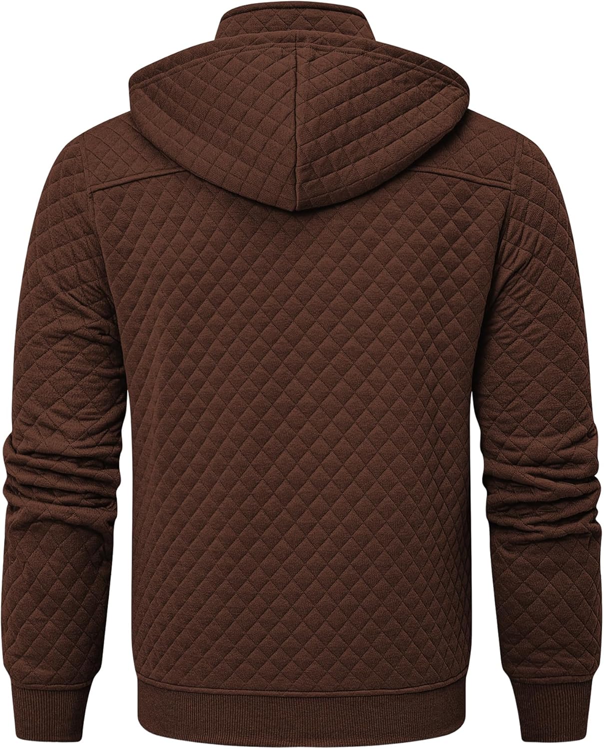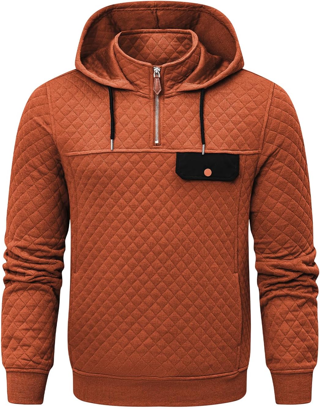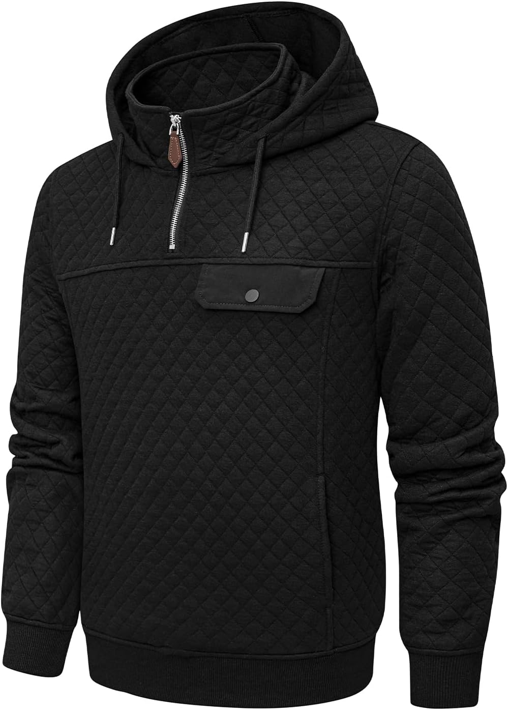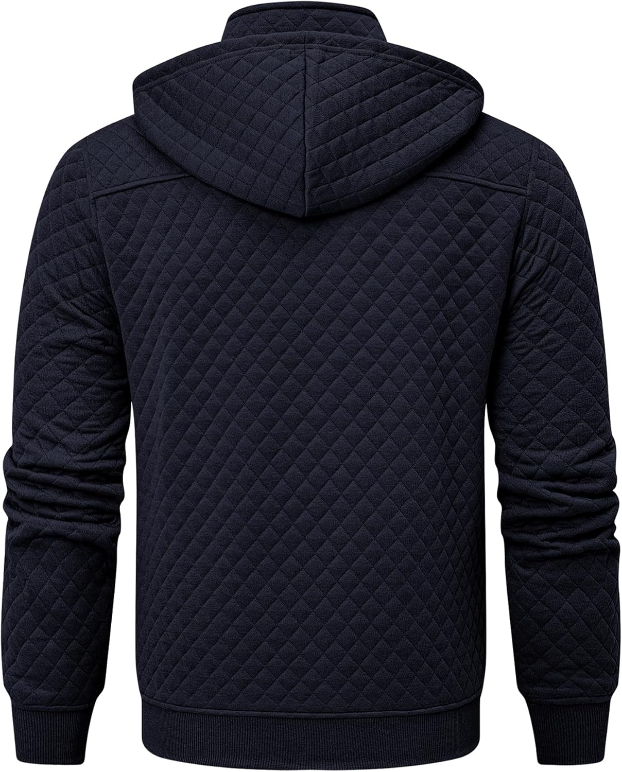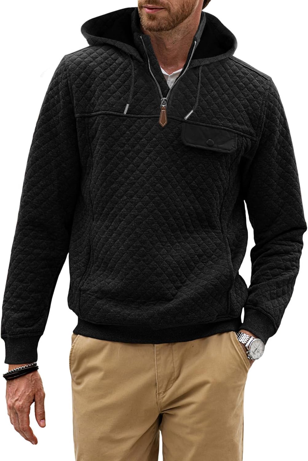 Men's Quilted Hoodies Casual Long Sleeve Quarter-Zip Pullover Sweatshirt with Pockets