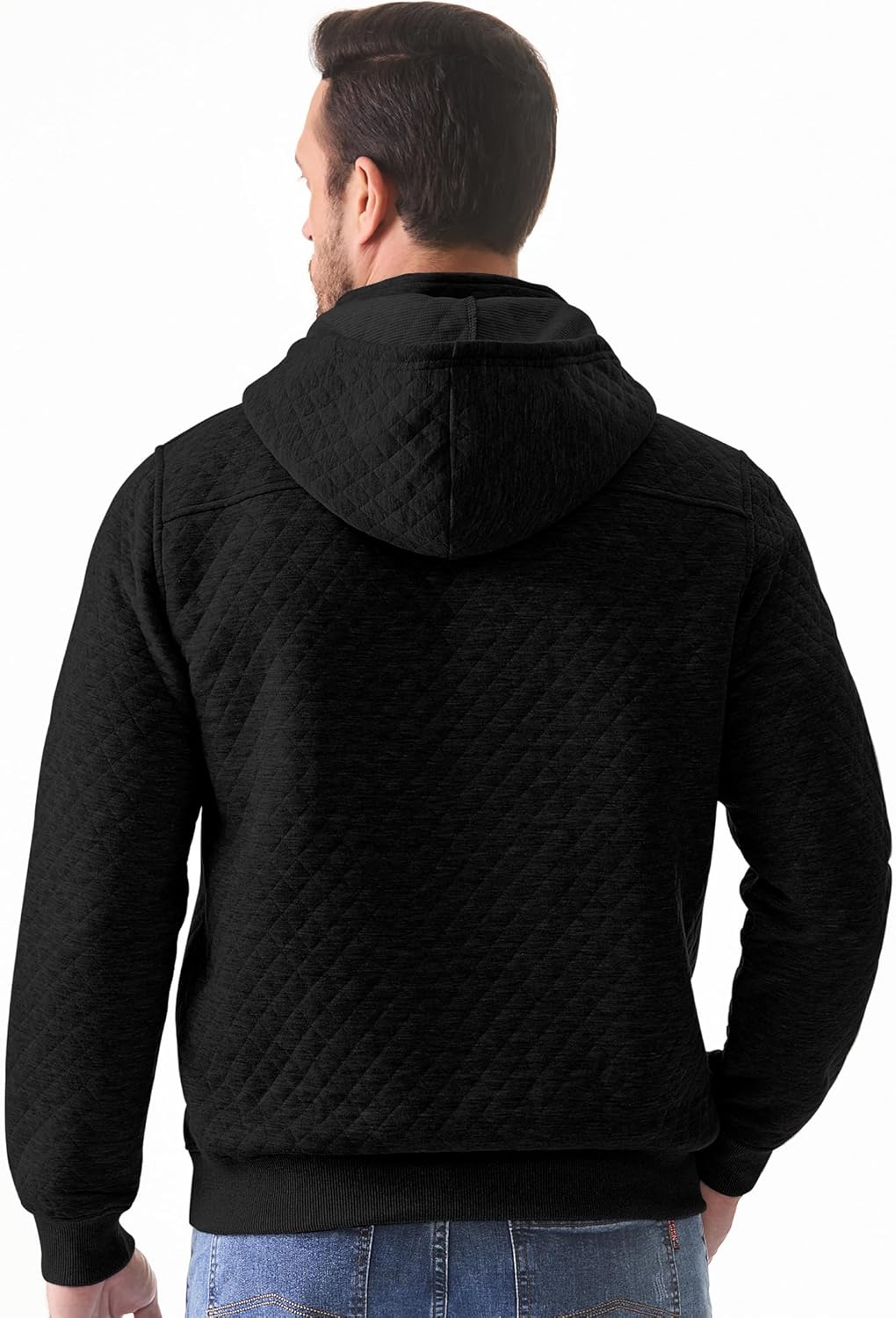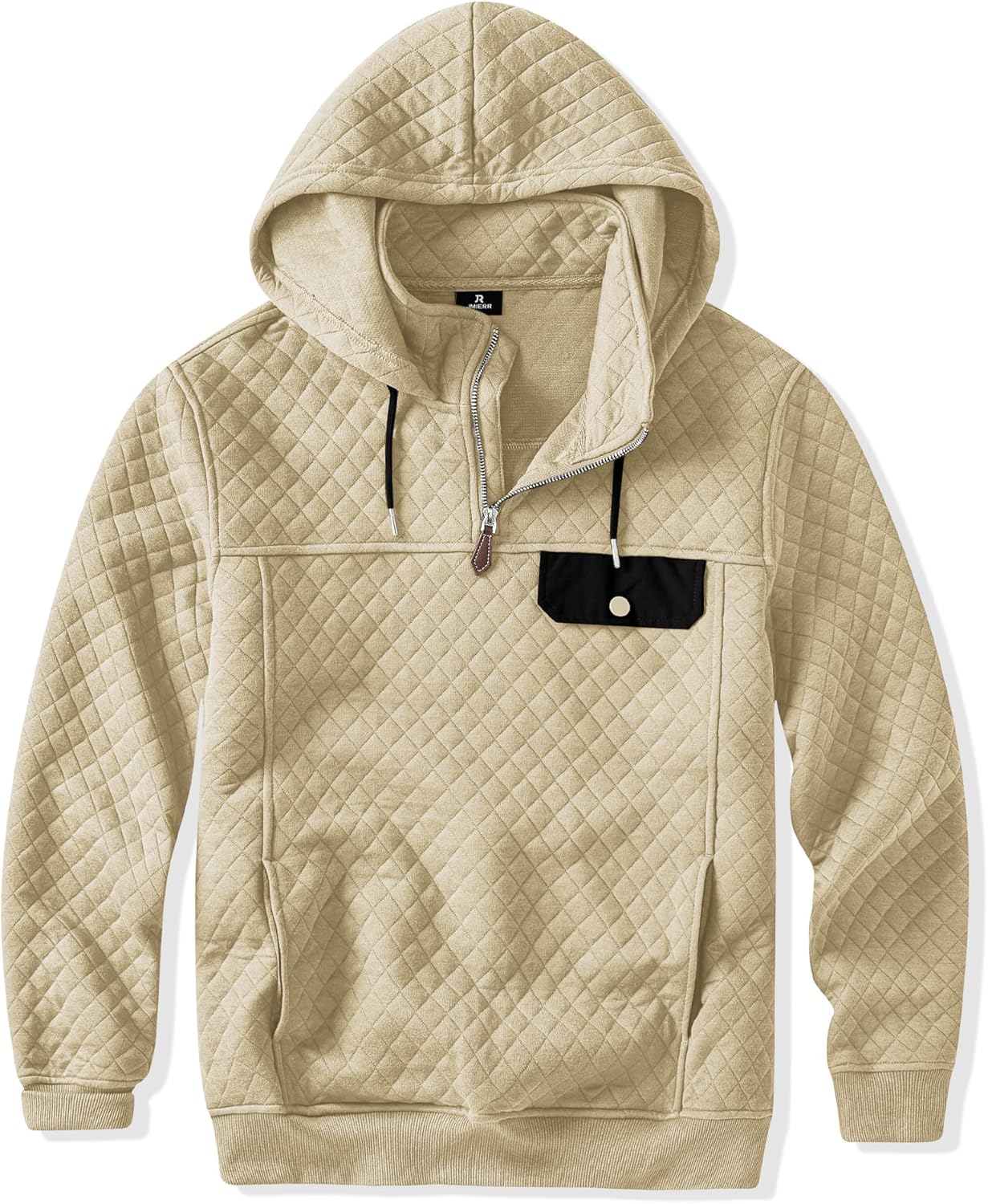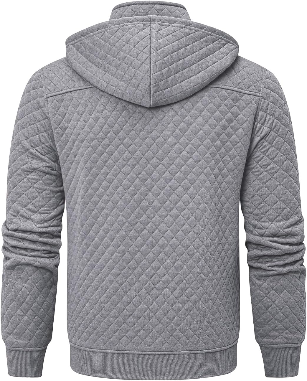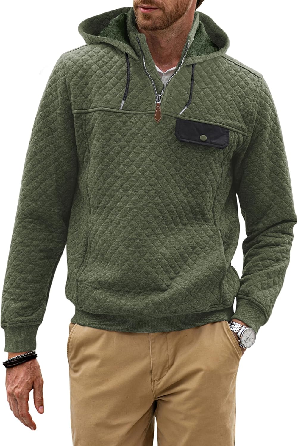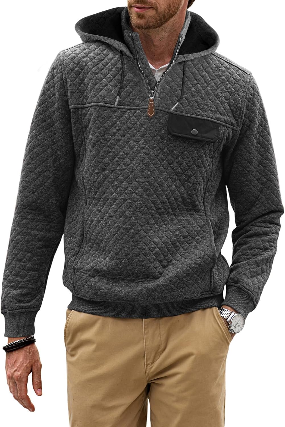 Men's Quilted Hoodies Casual Long Sleeve Quarter-Zip Pullover Sweatshirt with Pockets