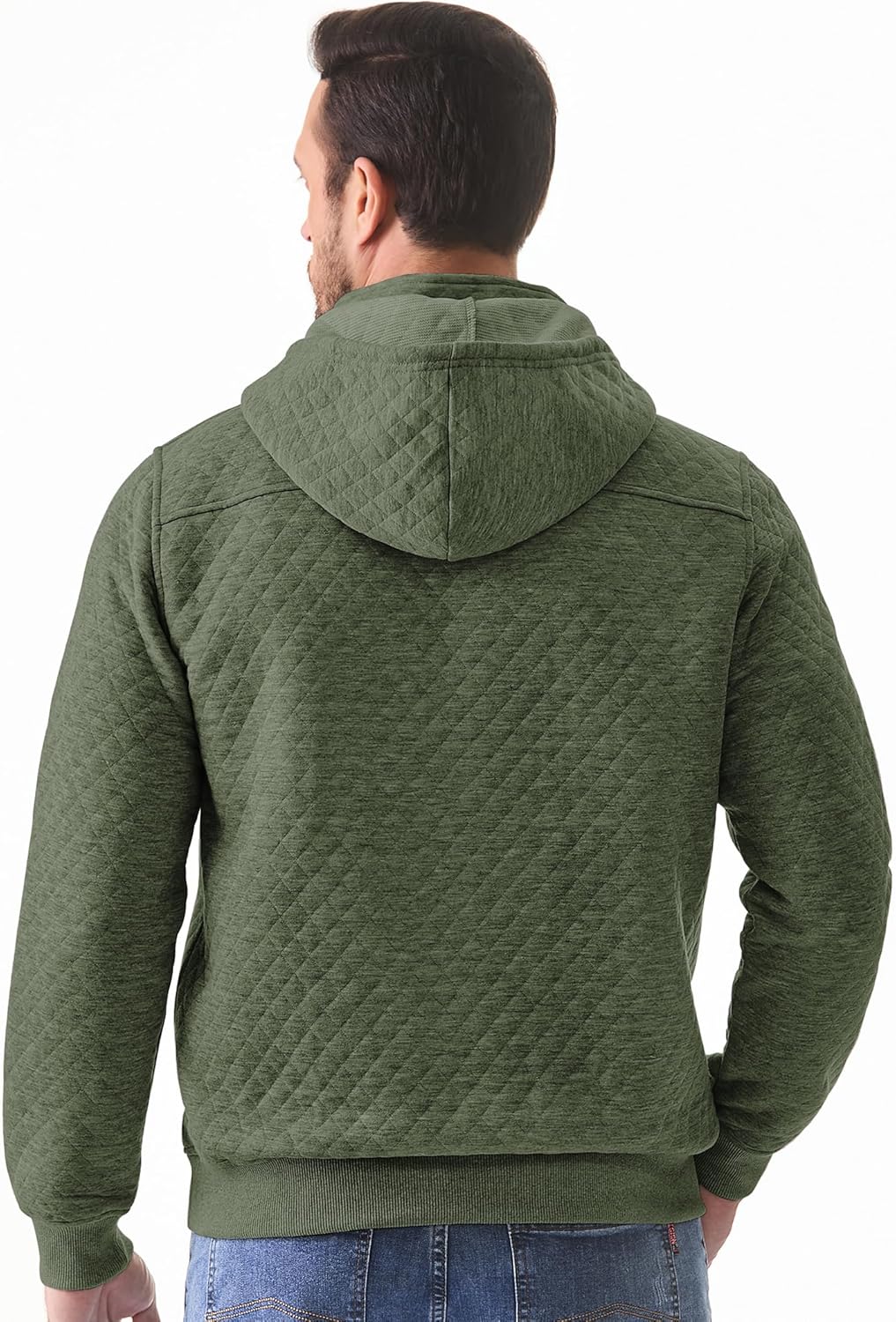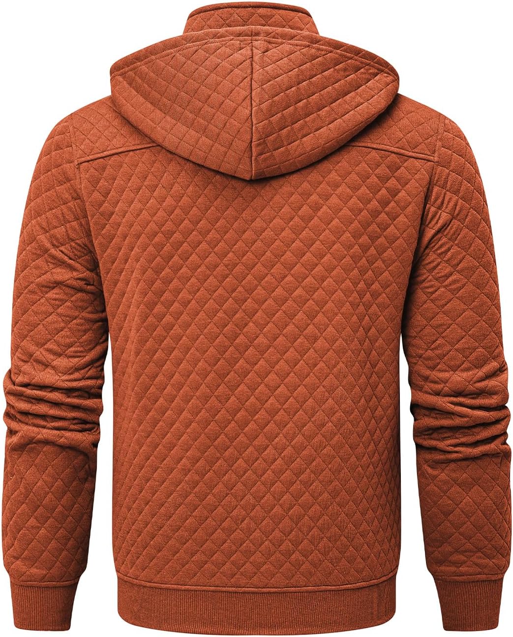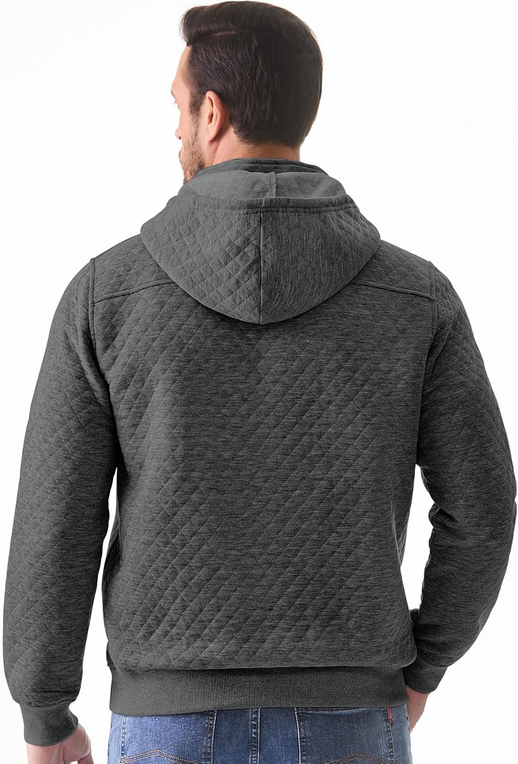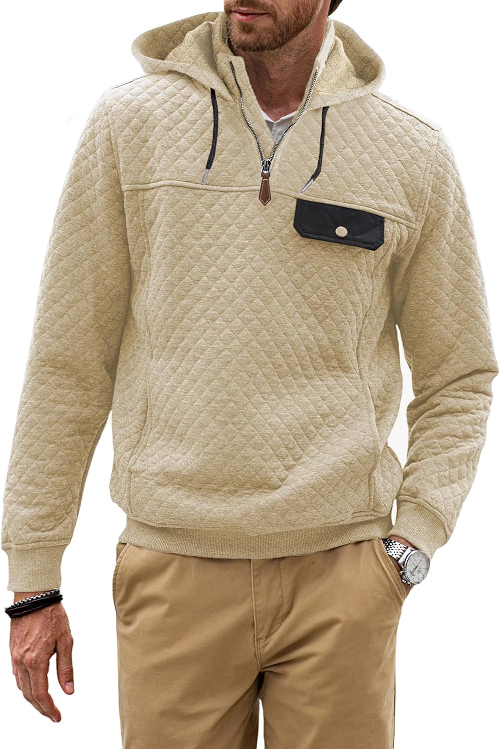 Men's Quilted Hoodies Casual Long Sleeve Quarter-Zip Pullover Sweatshirt with Pockets