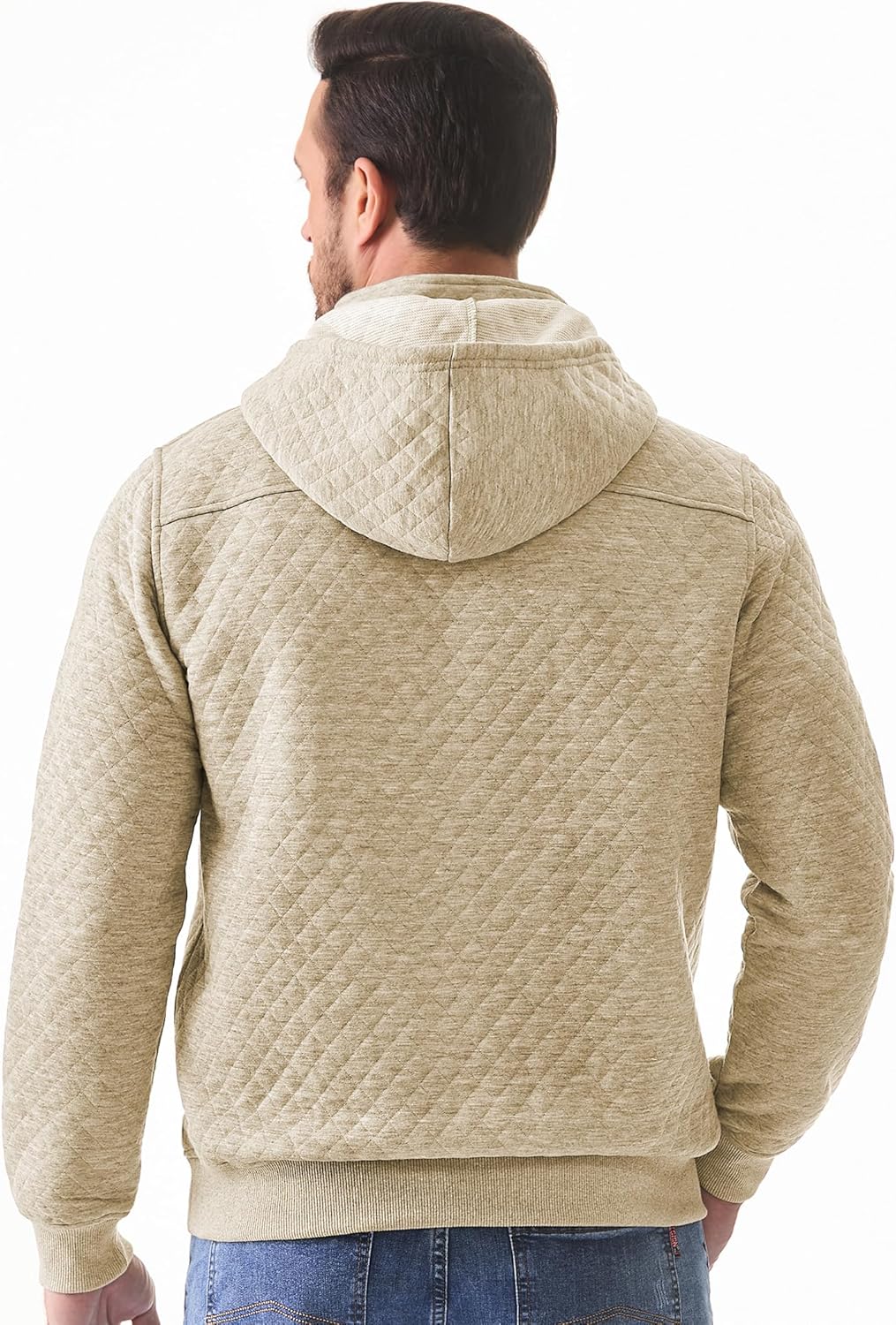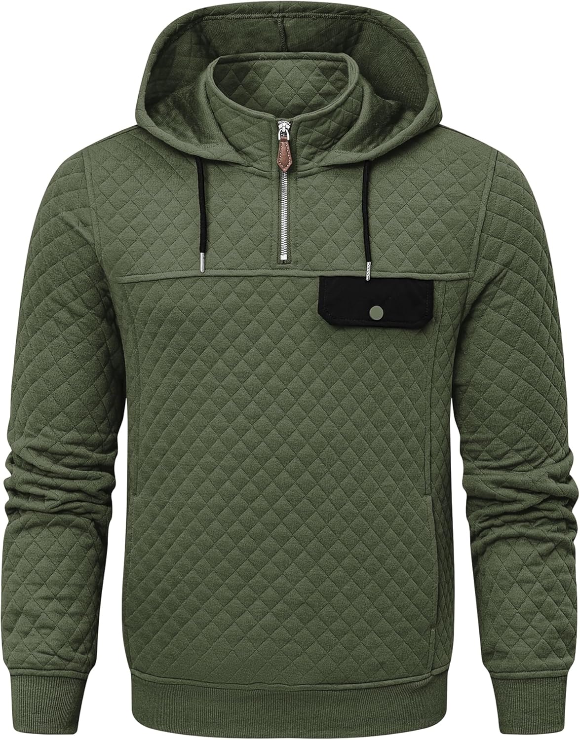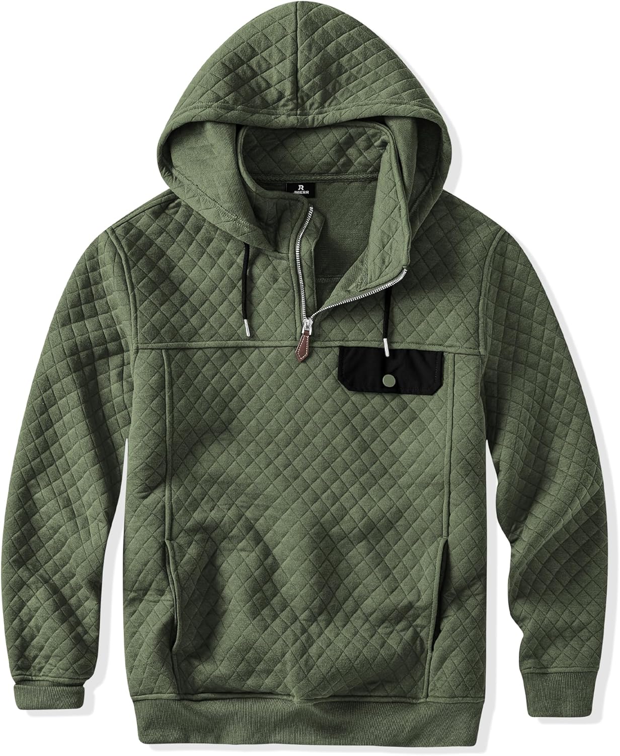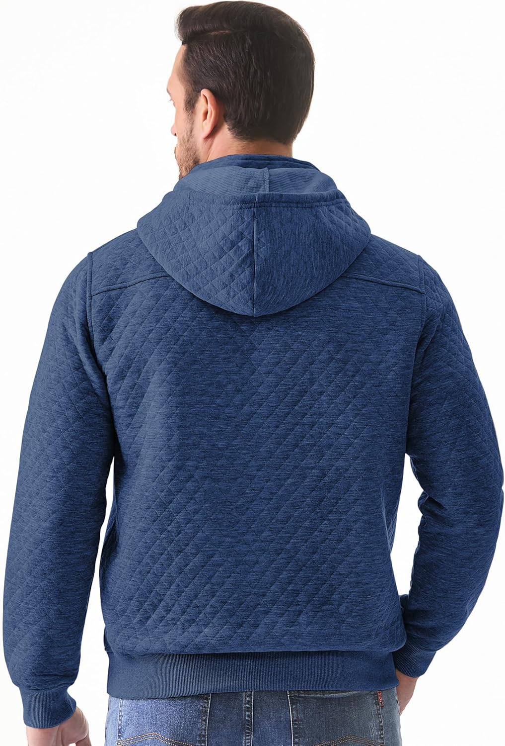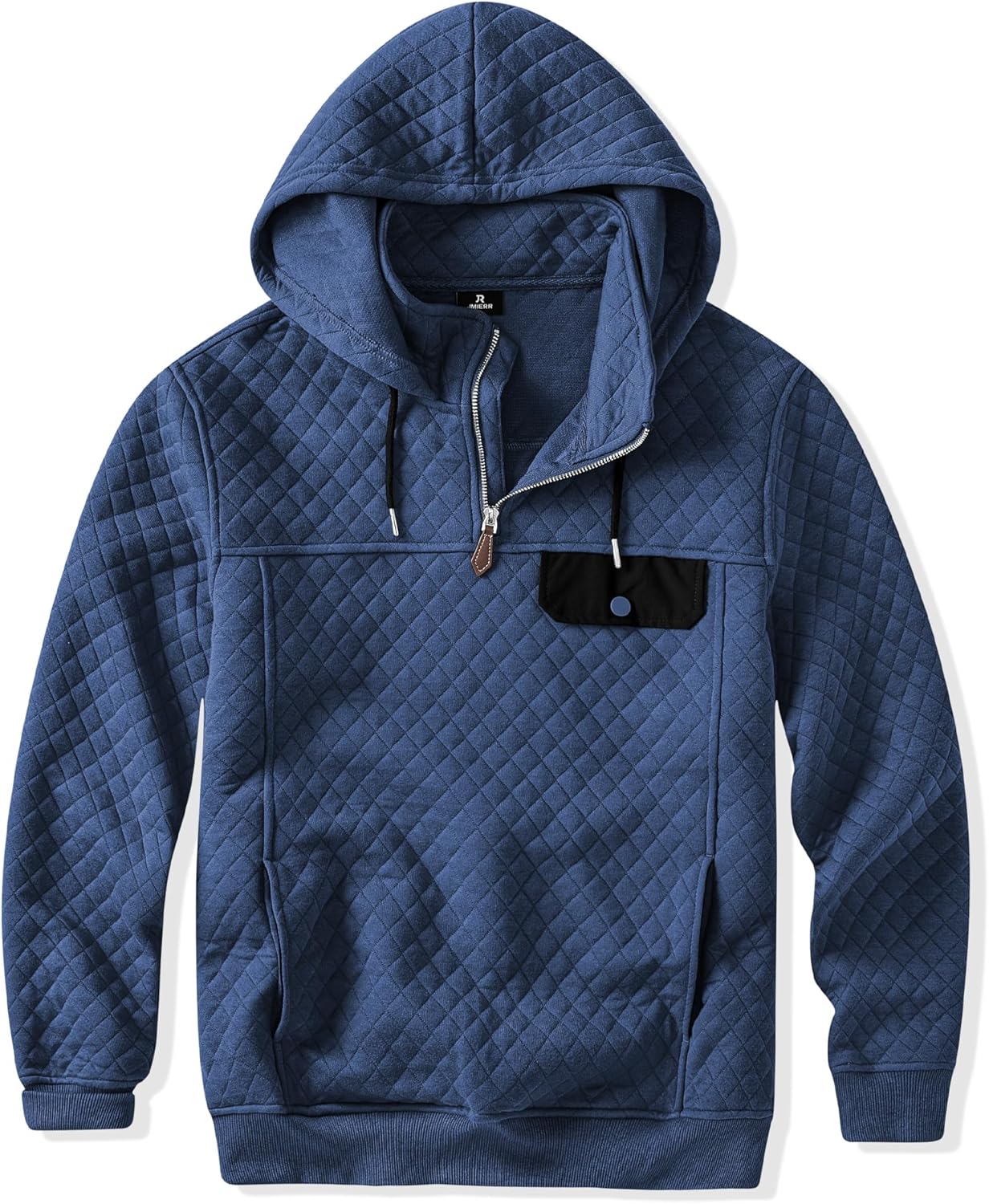 Men's Quilted Hoodies Casual Long Sleeve Quarter-Zip Pullover Sweatshirt with Pockets