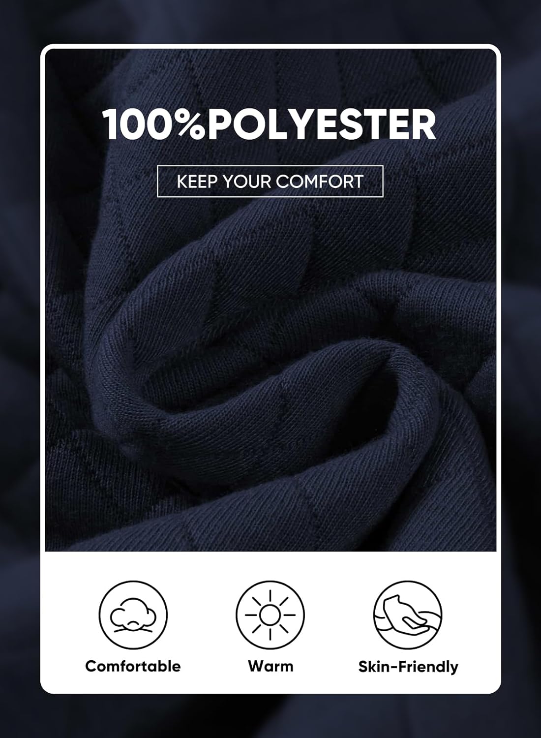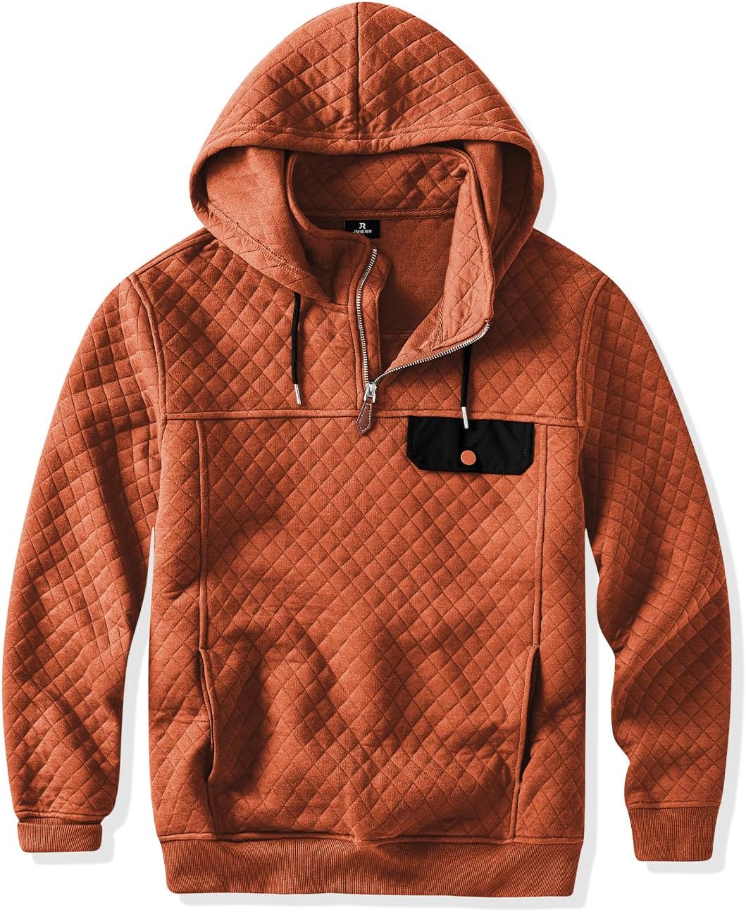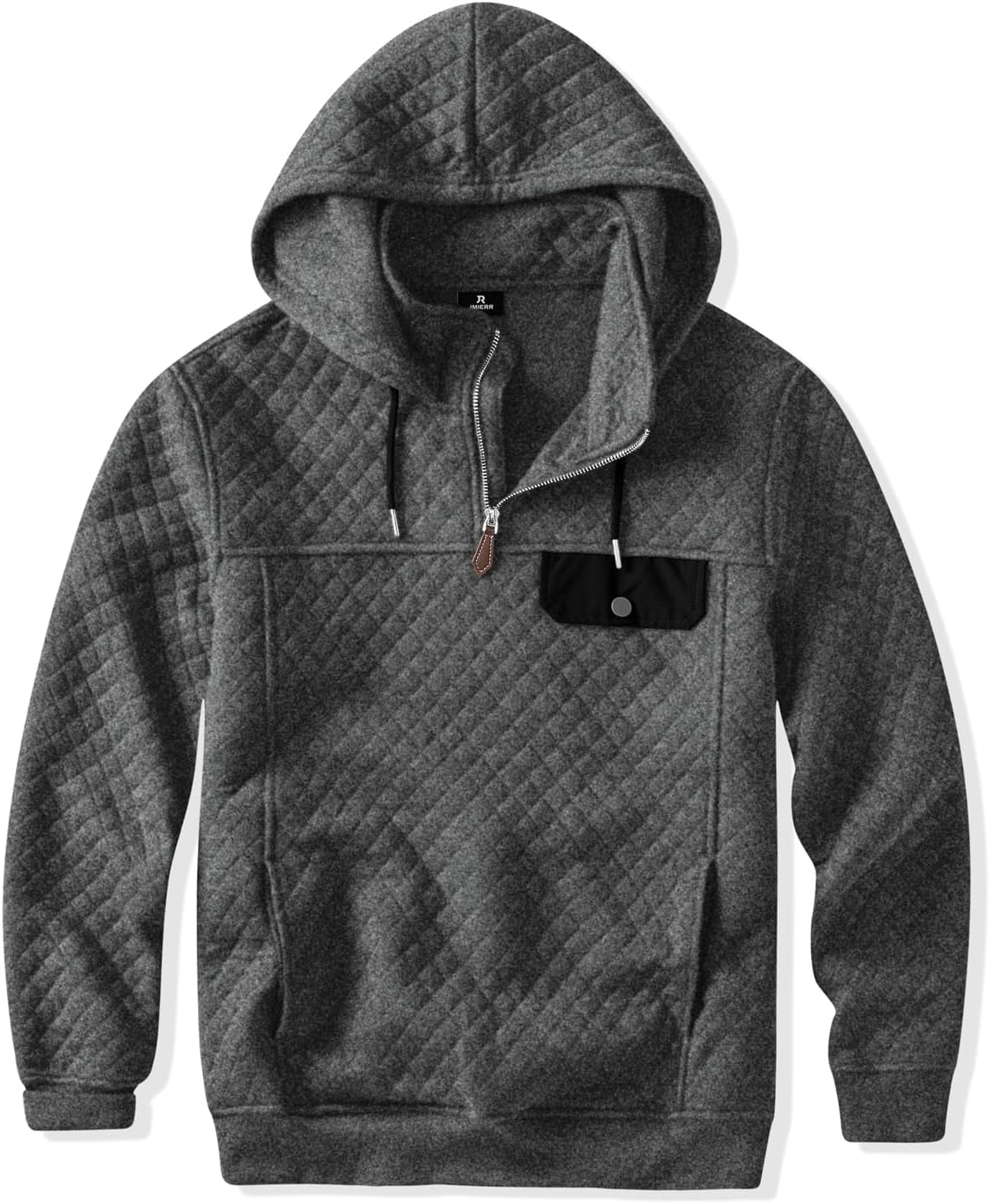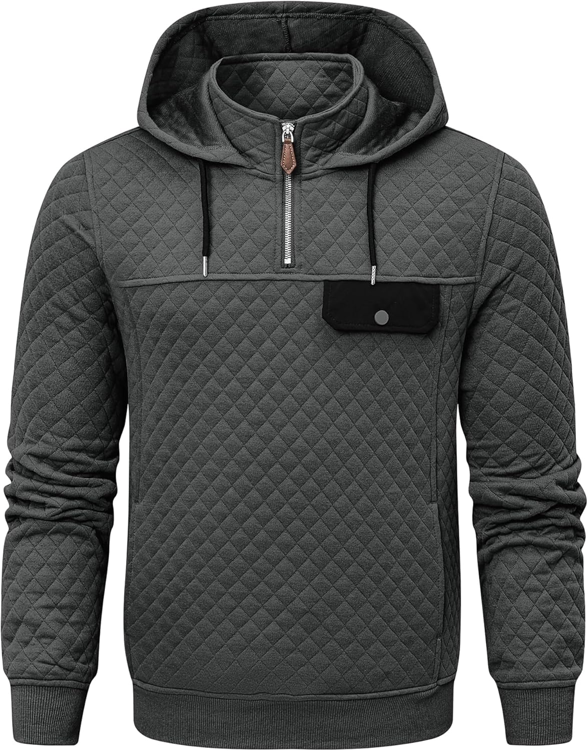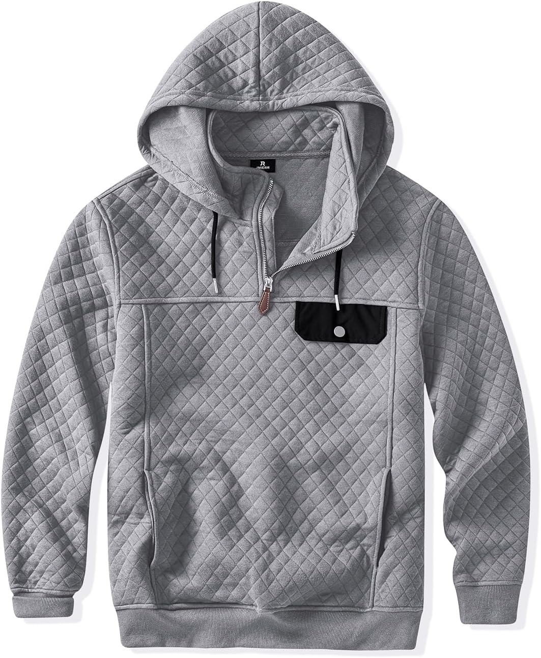 Men's Quilted Hoodies Casual Long Sleeve Quarter-Zip Pullover Sweatshirt with Pockets