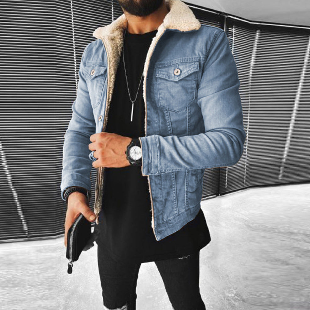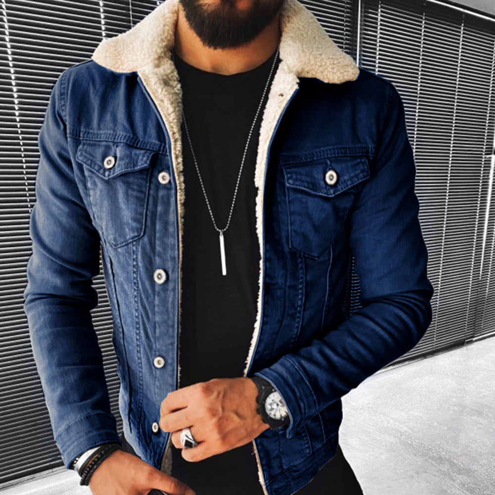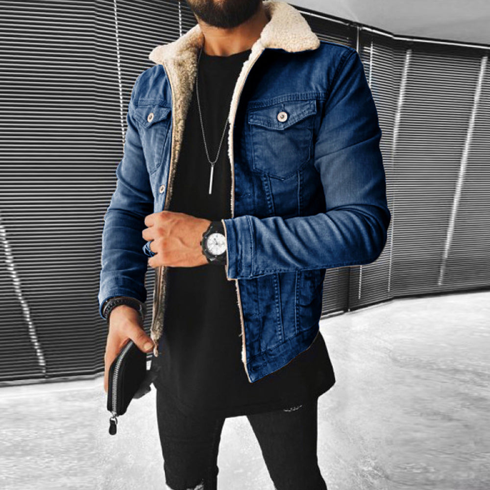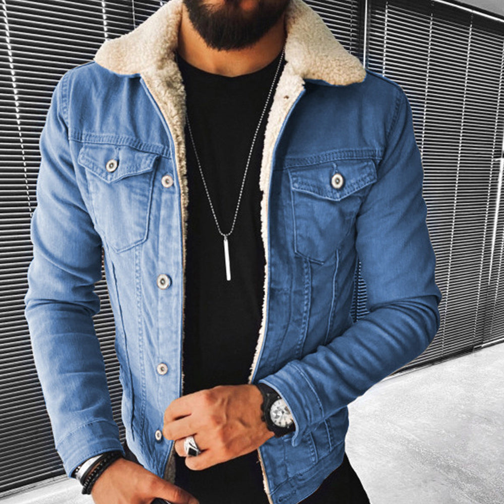 Neue verdickte Jeansjacke im Winter-Lammwoll-Stil für Herren