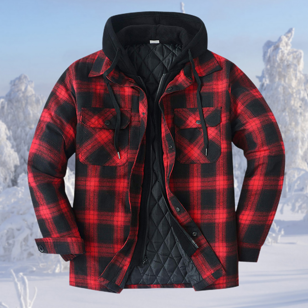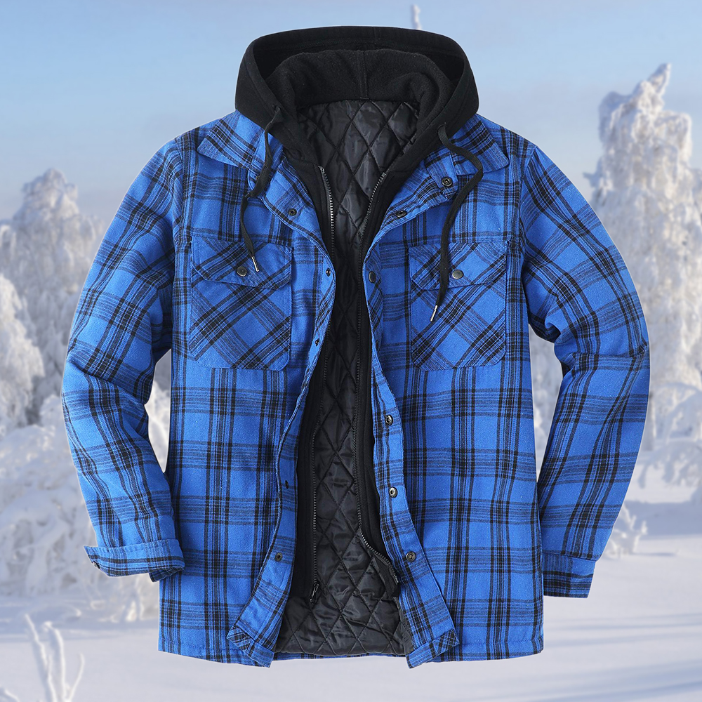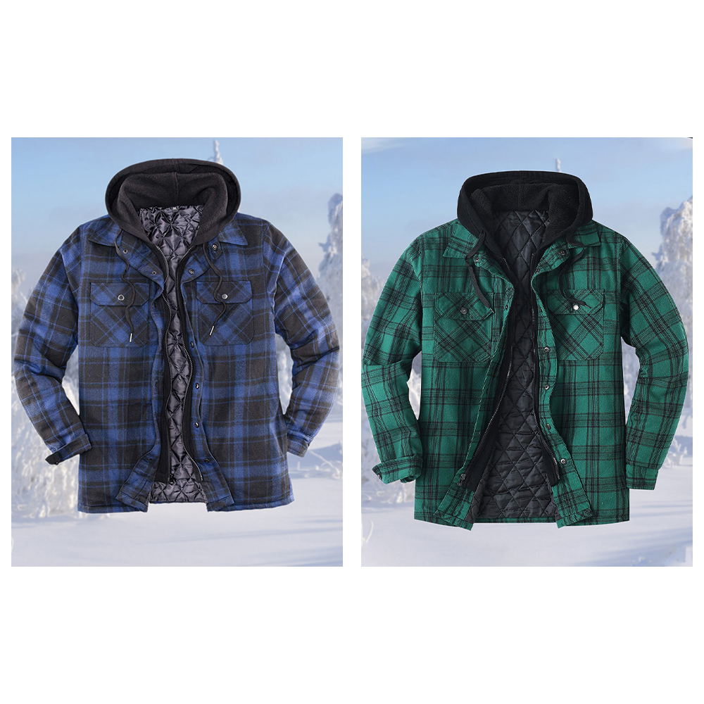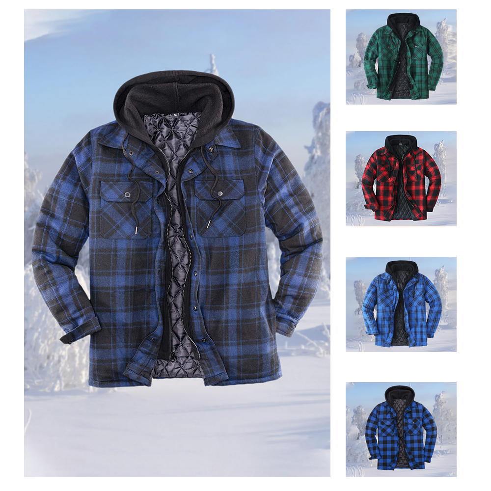1 * Wintermode Herren-Thermojacke mit Karomuster und Kapuze