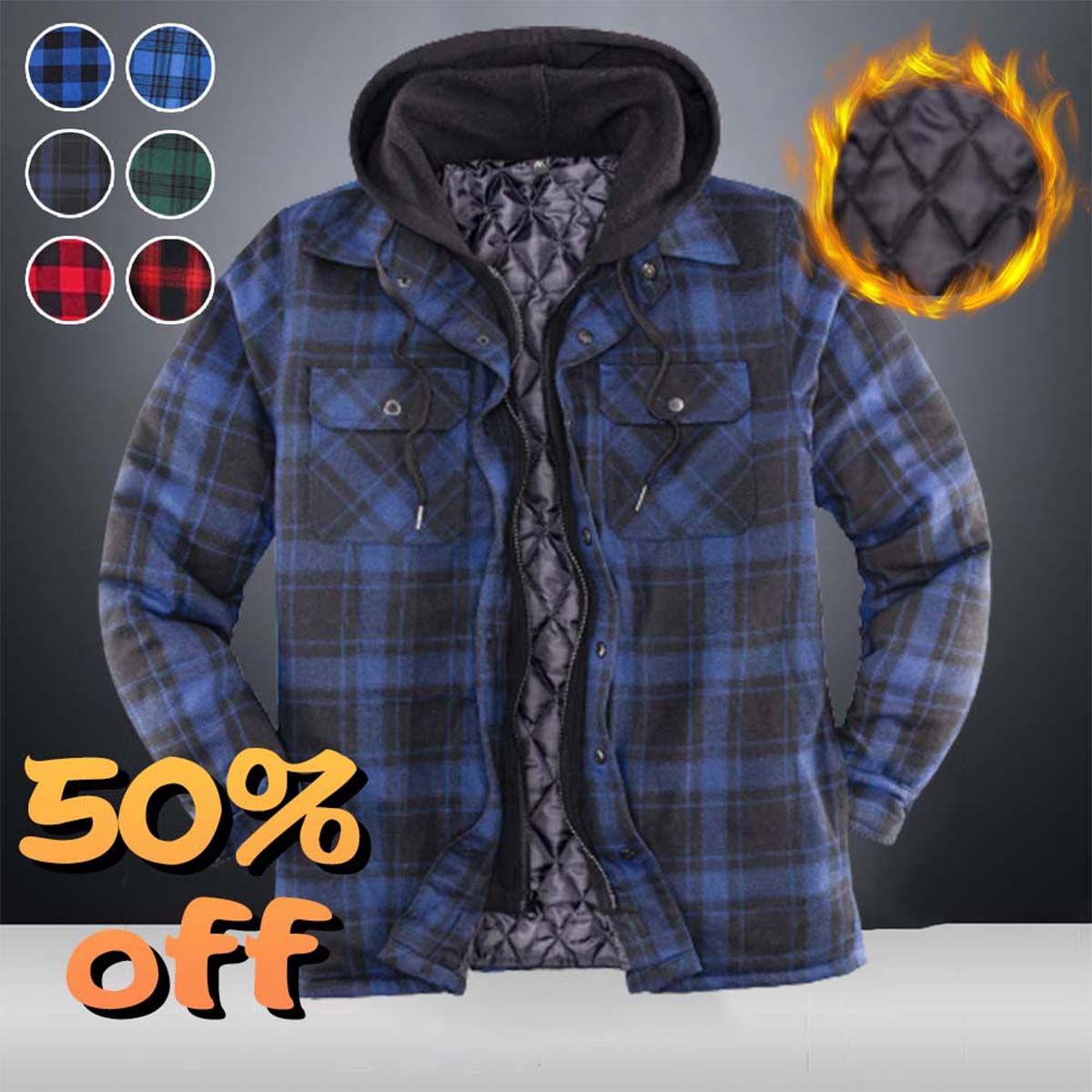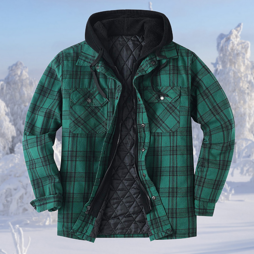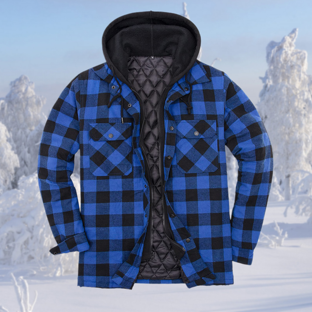 1 * Wintermode Herren-Thermojacke mit Karomuster und Kapuze